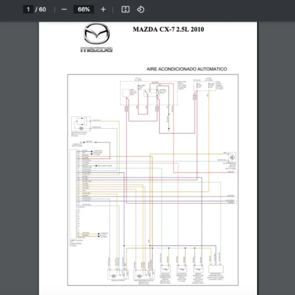 Si estas buscando un manual eléctrico de la marca Mazda modelo CX-7 de 2.5L año 2010, este es el diagrama automotriz que necesitas.