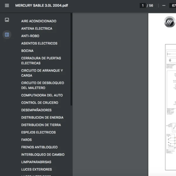 Si estas buscando un manual eléctrico de la marca Mercury modelo Sable de 3.0L año 2004, este es el diagrama automotriz que necesitas.