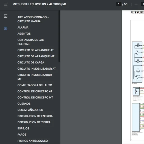Si estas buscando un manual eléctrico de la marca Mitsubishi modelo Eclipse de 2.4L año 2000, este es el diagrama automotriz que necesitas.