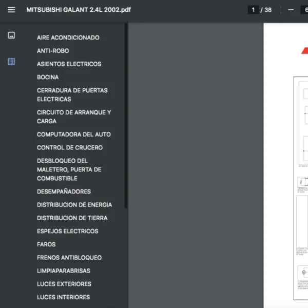 Si estas buscando un manual eléctrico de la marca Mitsubishi modelo Galant de 2.4L año 2002, este es el diagrama automotriz que necesitas.