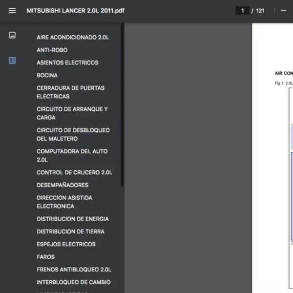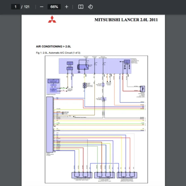 Si estas buscando un manual eléctrico de la marca Mitsubishi modelo Lancer año 2011 de 2.0L, este es el diagrama automotriz que necesitas.