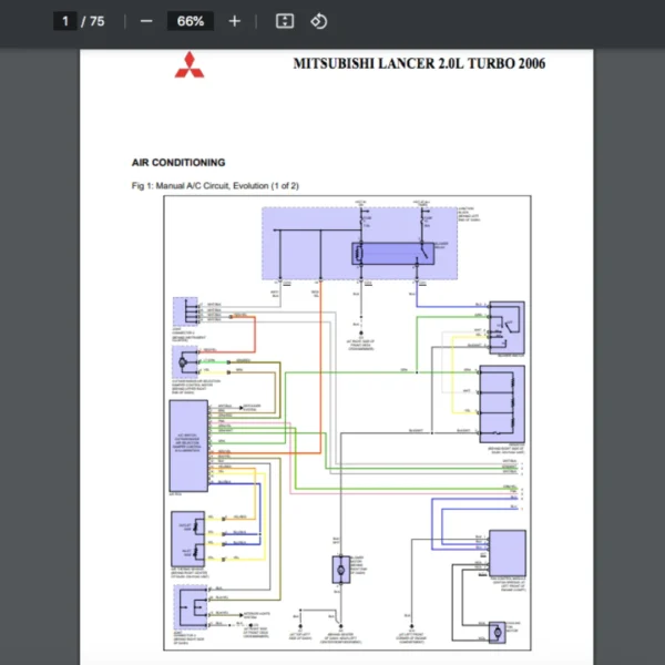 Si estas buscando un manual eléctrico de la marca Mitsubishi modelo Lancer año 2006 de 2.0L TURBO, este es el diagrama automotriz que necesitas.