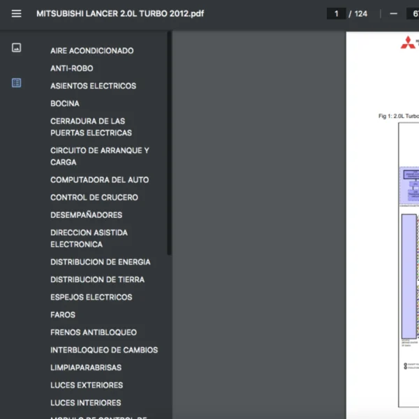 Si estas buscando un manual eléctrico de la marca Mitsubishi  modelo Lancer  año 2012 de 2.0L TURBO, este es el diagrama automotriz que necesitas.