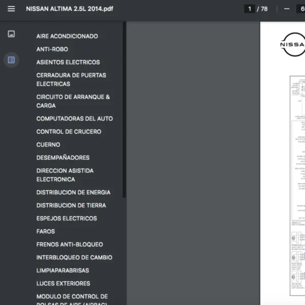 Si estas buscando un manual eléctrico de la marca Nissan modelo Altima de 2.5L año 2014, este es el diagrama automotriz que necesitas.