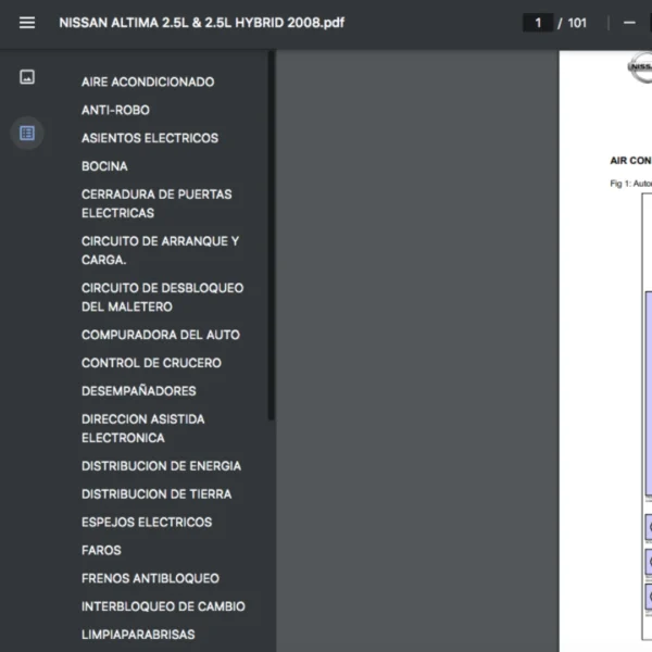 Si estas buscando un manual eléctrico de la marca Nissan modelo Altima de 2.5L año 2008, este es el diagrama automotriz que necesitas.