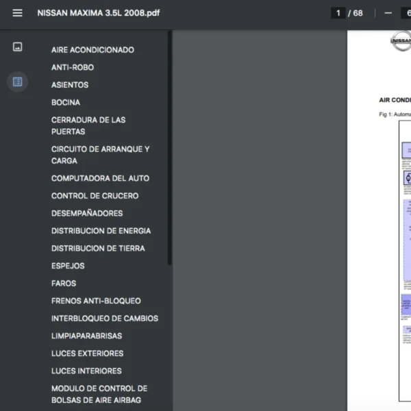 Si estas buscando un manual eléctrico de la marca Nissan modelo Maxima de 3.5L año 2008, este es el diagrama automotriz que necesitas.