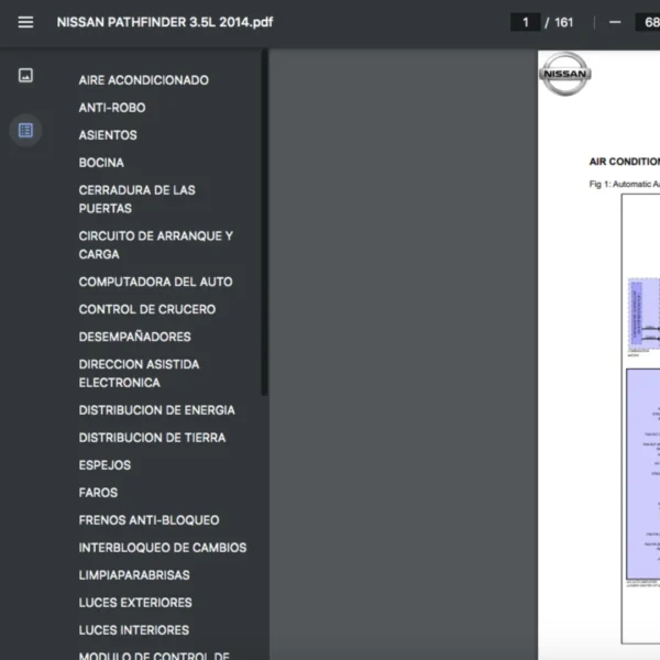 Si estas buscando un manual eléctrico de la marca Nissan modelo Pathfinder de 3.5L año 2014, este es el diagrama automotriz que necesitas.