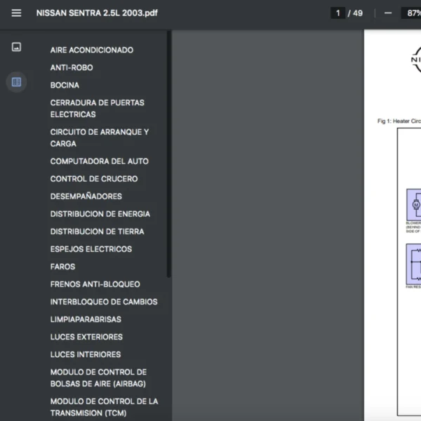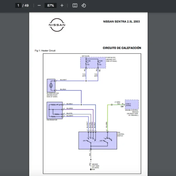 Si estas buscando un manual eléctrico de la marca Nissan modelo Sentra de 2.5L año 2003, este es el diagrama automotriz que necesitas.