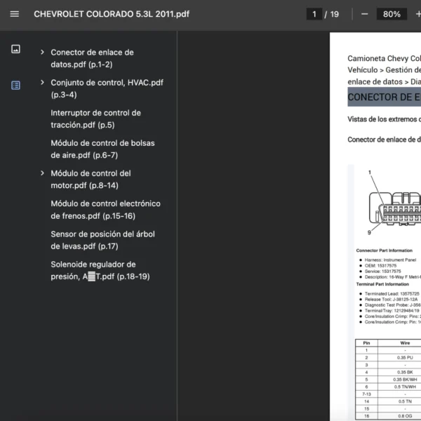 PDF visible en teléfono, tablet o PC; compatible únicamente con Chevrolet Colorado 5.3L 2011. Si requieres otra variante/modelo, contáctanos.