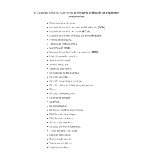 El Diagrama Eléctrico Automotriz te incluye la gráfica de los siguientes componentes: