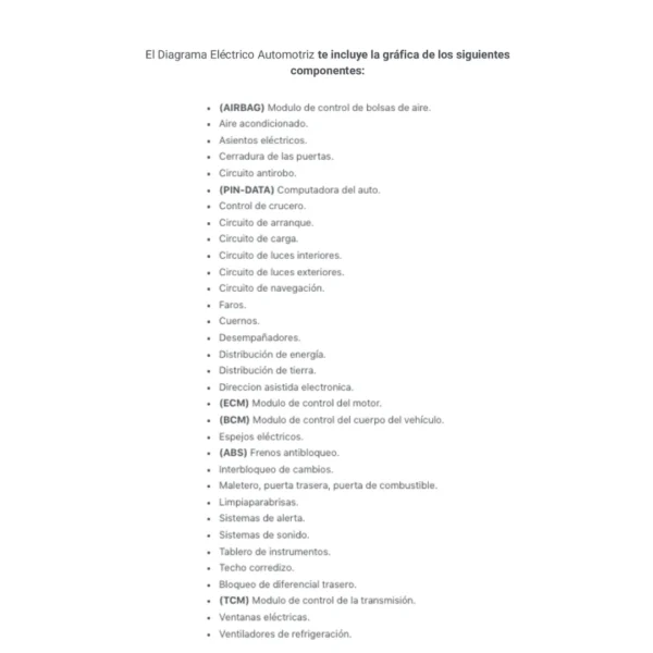 El Diagrama Eléctrico Automotriz te incluye la gráfica de los siguientes componentes: