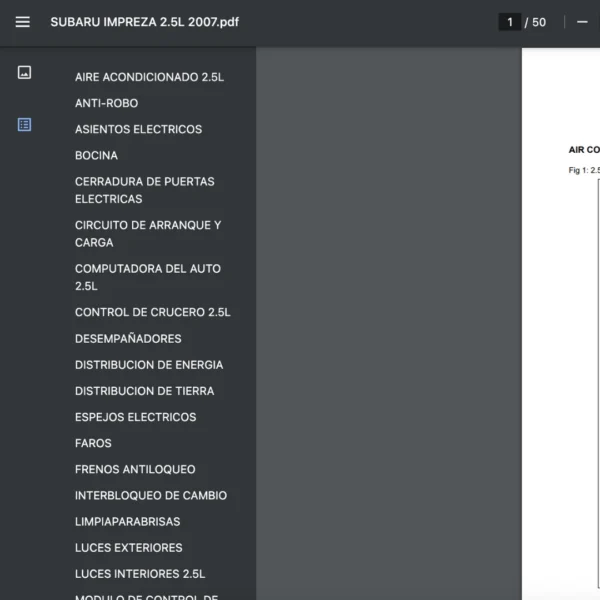 Si estas buscando un manual eléctrico de la marca Subaru modelo Impreza de 2.5L año 2007, este es el diagrama automotriz que necesitas.