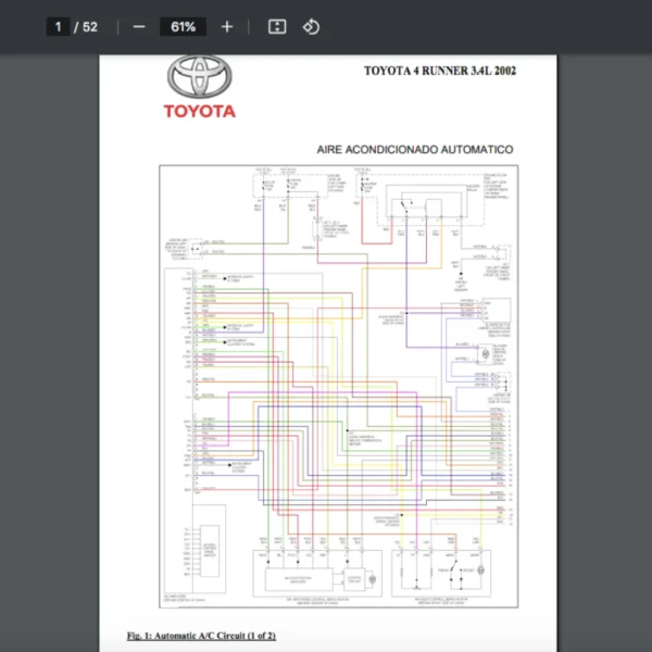 Si estas buscando un manual eléctrico de la marca Toyota modelo 4 Runner de 3.4L año 2002, este es el diagrama automotriz que necesitas.