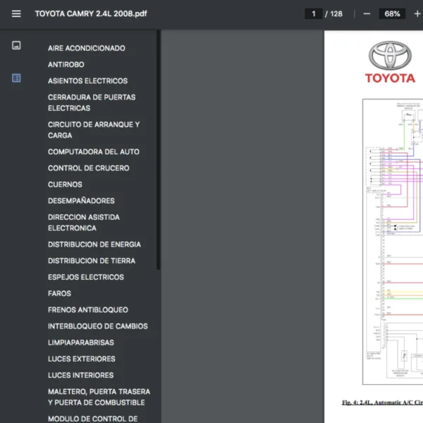 Si estas buscando un manual eléctrico de la marca Toyota modelo Camry año 2008 de 2.4L, este es el diagrama automotriz que necesitas.