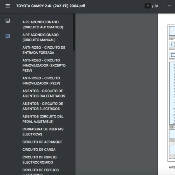Si estas buscando un manual eléctrico de la marca Toyota modelo Camry de 2.4L año 2004, este es el diagrama automotriz que necesitas.