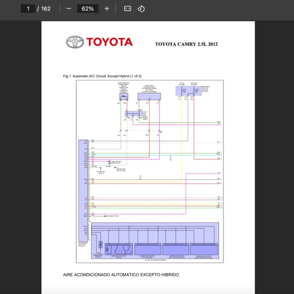 Si estas buscando un manual eléctrico de la marca Toyota modelo Camry de 2.5L año 2012, este es el diagrama automotriz que necesitas.