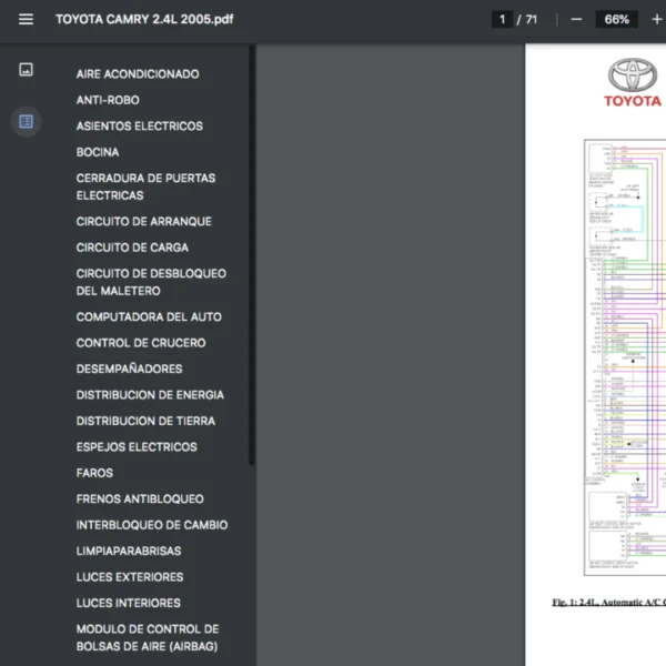 Si estas buscando un manual eléctrico de la marca Toyota modelo Camry año 2005 de 2.4L, este es el diagrama automotriz que necesitas.