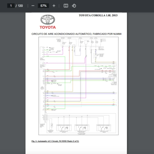 Si estas buscando un manual eléctrico de la marca Toyota modelo Corolla de 1.8L año 2013, este es el diagrama automotriz que necesitas.