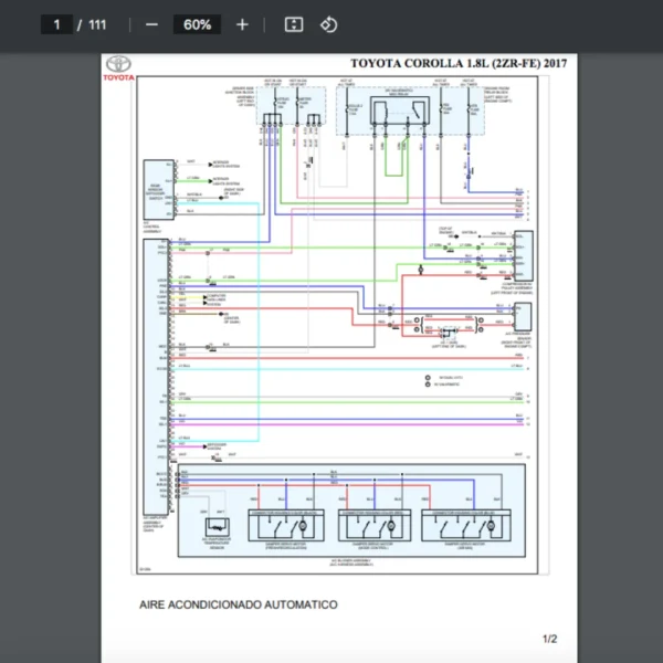 Si estas buscando un manual eléctrico de la marca Toyota modelo Corolla de 1.8L año 2017, este es el diagrama automotriz que necesitas.
