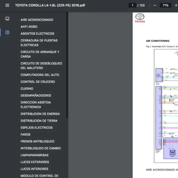 Si estas buscando un manual eléctrico de la marca Toyota modelo Corolla de 1.8L año 2016, este es el diagrama automotriz que necesitas.