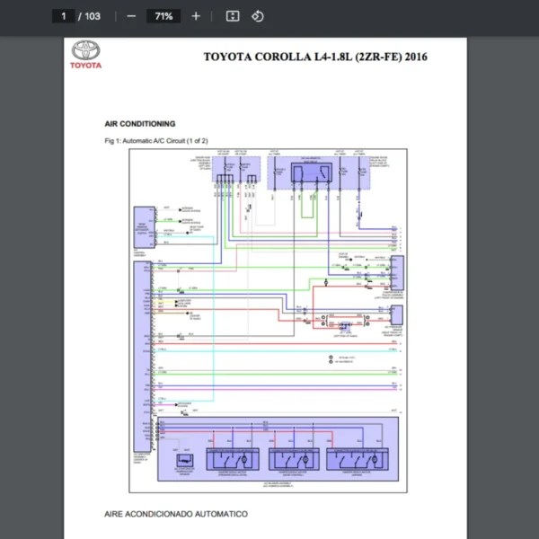 Sé el primero en valorar “Diagrama Eléctrico TOYOTA COROLLA 1.8L (2ZR-FE) 2016”