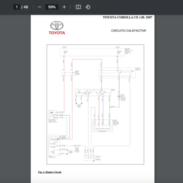 Si estas buscando un manual eléctrico de la marca Toyota modelo Corolla de 1.8L año 2007, este es el diagrama automotriz que necesitas.