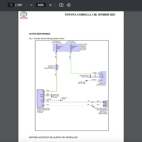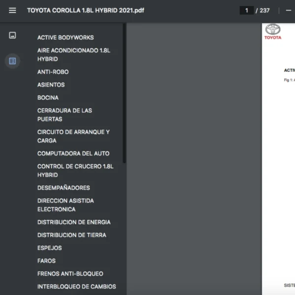 Si estas buscando un manual eléctrico de la marca Toyota modelo Corolla de 1.8L HYBRID año 2021, este es el diagrama automotriz que necesitas.