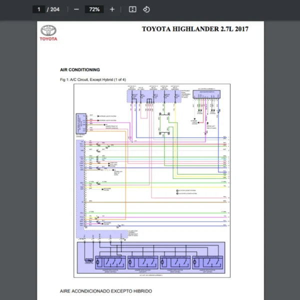Si estás buscando un manual eléctrico de la marca Toyota modelo Highlander año 2017 de 2.7L, este es el diagrama automotriz que necesitas.