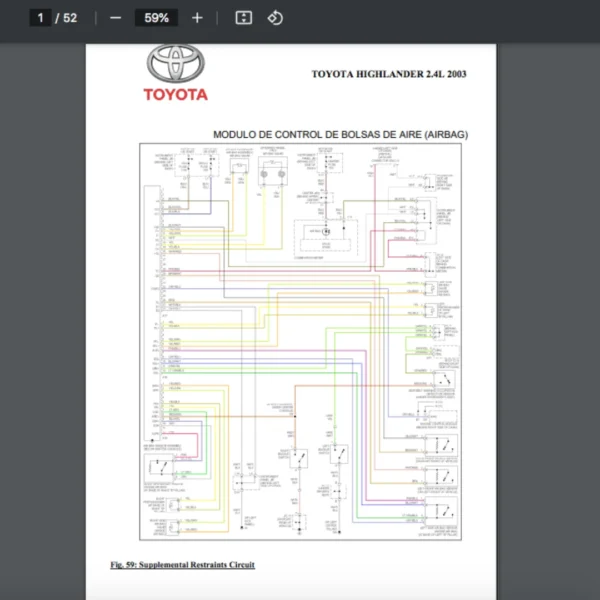 Si estas buscando un manual eléctrico de la marca Toyota modelo Highlander de 2.4L año 2003, este es el diagrama automotriz que necesitas.