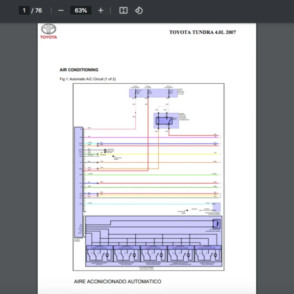 Si estas buscando un manual eléctrico de la marca Toyota modelo Tundra de 4.0L año 2007, este es el diagrama automotriz que necesitas.