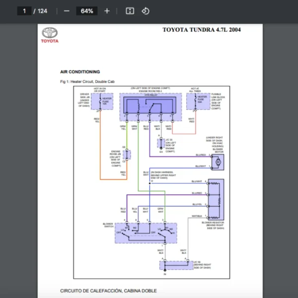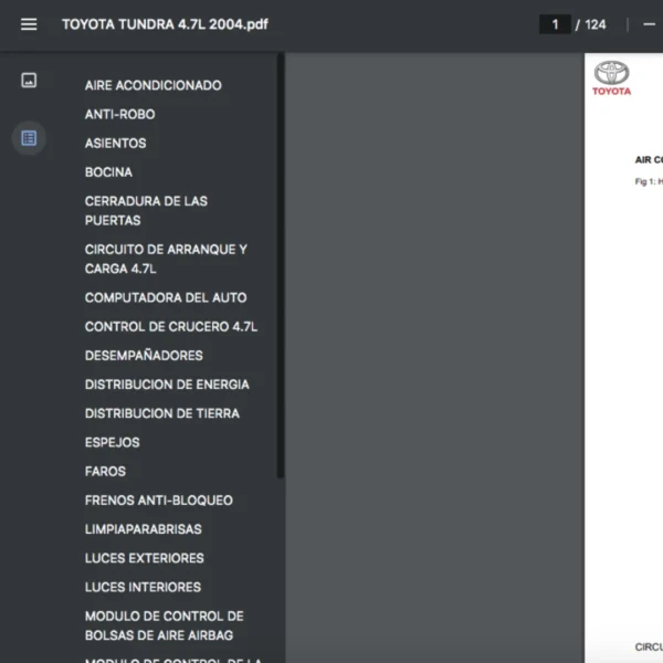 Si estas buscando un manual eléctrico de la marca Toyota modelo Tundra de 4.7L año 2004, este es el diagrama automotriz que necesitas.