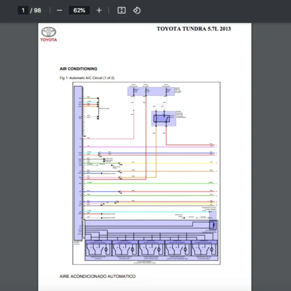 Si estas buscando un manual eléctrico de la marca Toyota modelo Tundra año 2013 de 5.7L, este es el diagrama automotriz que necesitas.