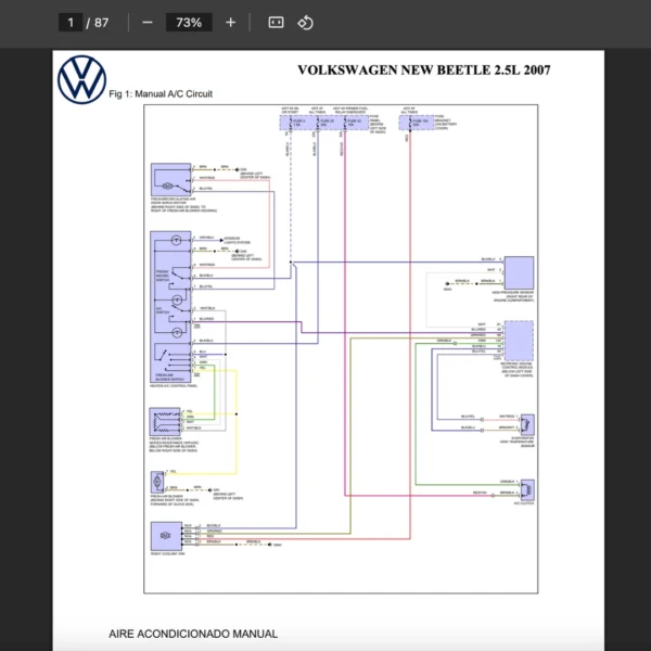 Si estas buscando un manual eléctrico de la marca Volkswagen modelo Beetle de 2.5L año 2007, este es el diagrama automotriz que necesitas.