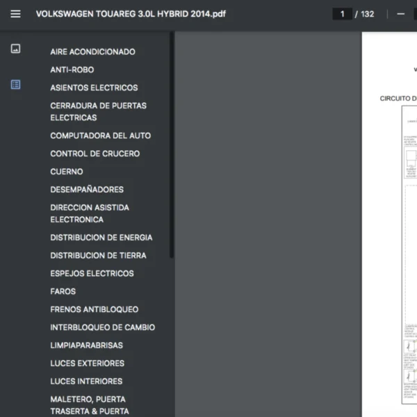 Si estas buscando un manual eléctrico de la marca Volkswagen modelo Touareg de 3.0L HYBRID año 2014, este es el diagrama automotriz que necesitas.