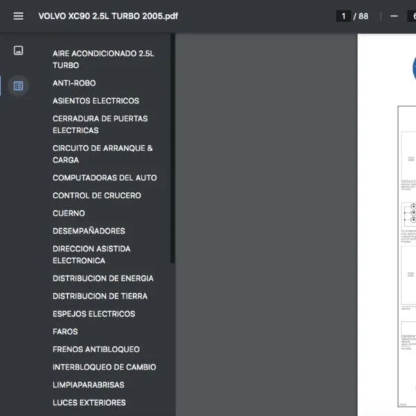 Si estas buscando un manual eléctrico de la marca Volvo modelo XC90 de 2.5L año 2005, este es el diagrama automotriz que necesitas.